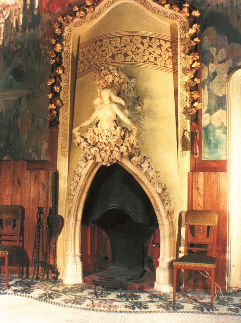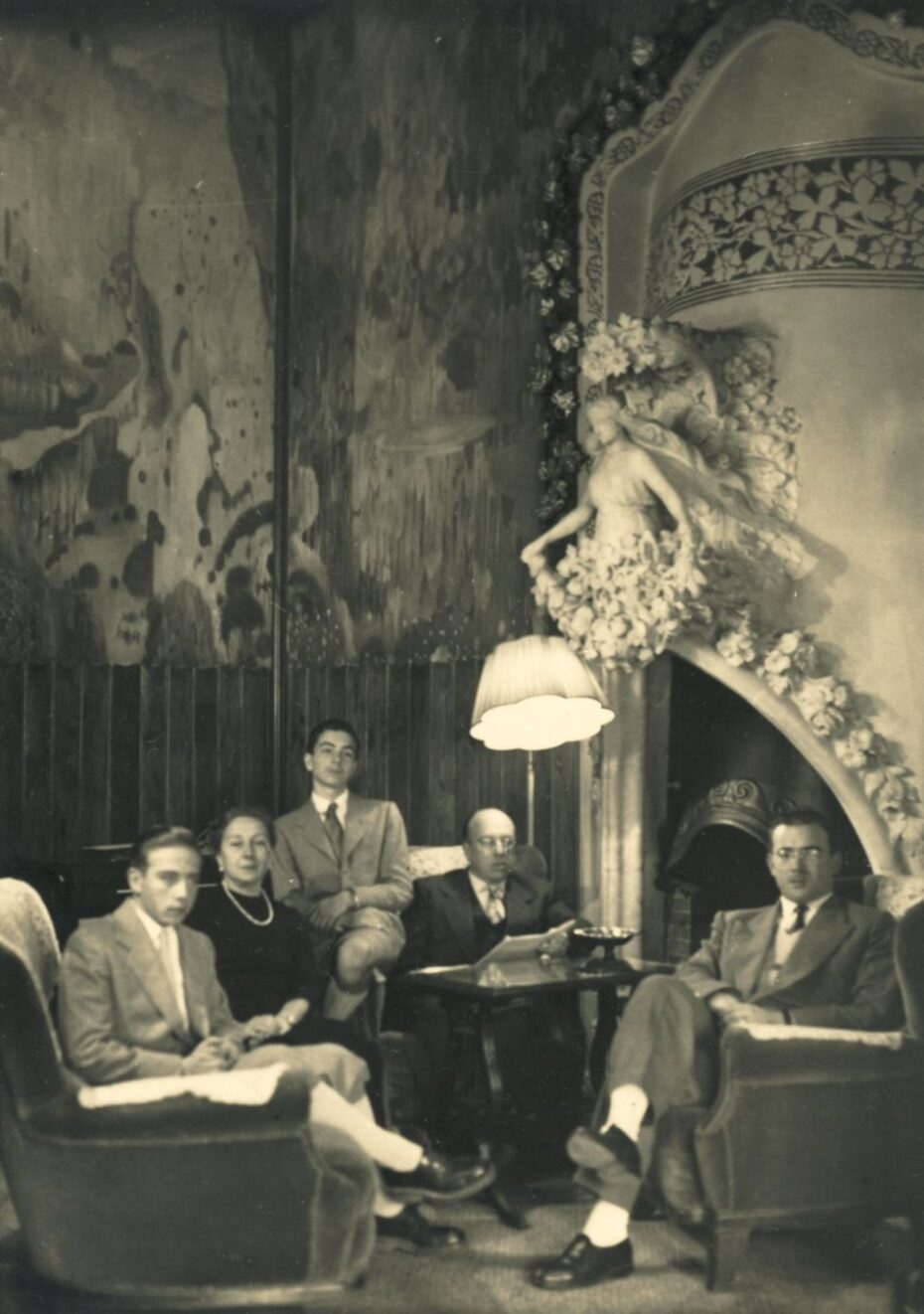The ground floor featured an alabaster fireplace designed by Eusebi Arnau and murals by Joaquim Mir, nephew of the owner. Gaspar Homar and the ceramicist Sebastià Ribó also contributed to the decoration.